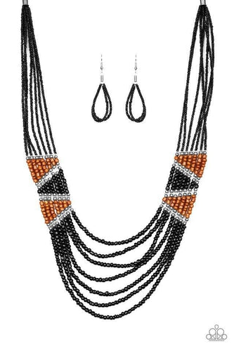 TAHITI TROPIC BROWN WOOD BEAD NECKLACE PAPARAZZI ACCESSORIES