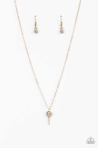 Key Figure - Gold - White Rhinestones - Necklace & Earrings