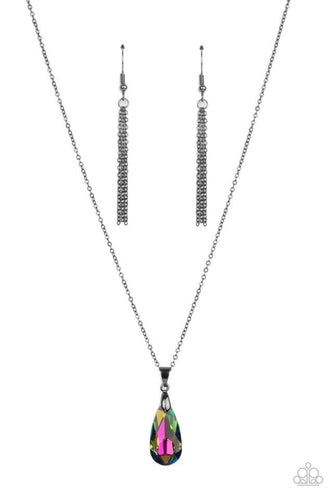 WISH UPON A ROCK STAR - MULTI OIL SPILL GUNMETAL NECKLACE